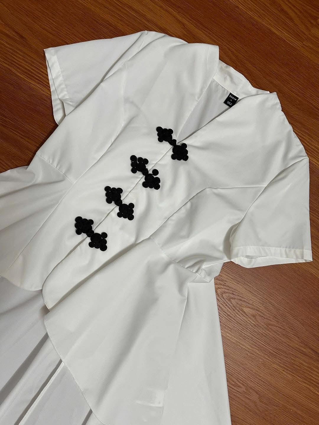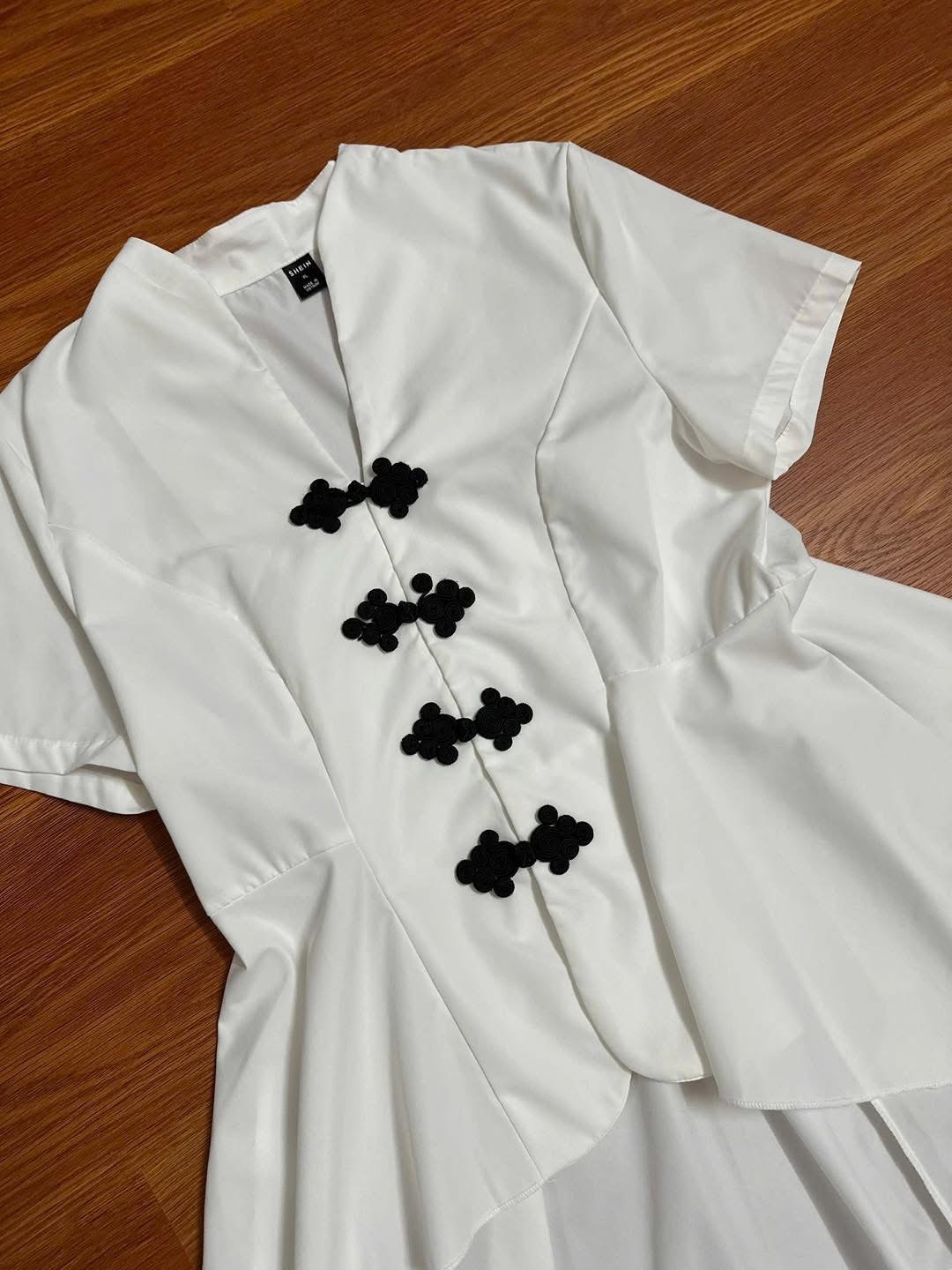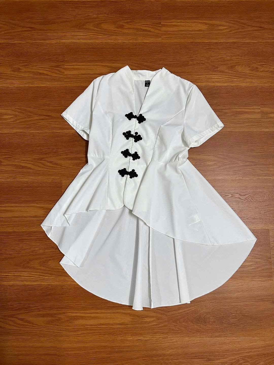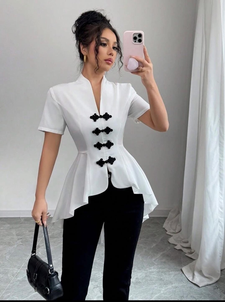 Áo kiểu Sh.ein bigsize, áo cổ V chit eo xoè nhẹ ,nút áo kiểu Trung Hoa nổi bật, chất poly thoáng mát