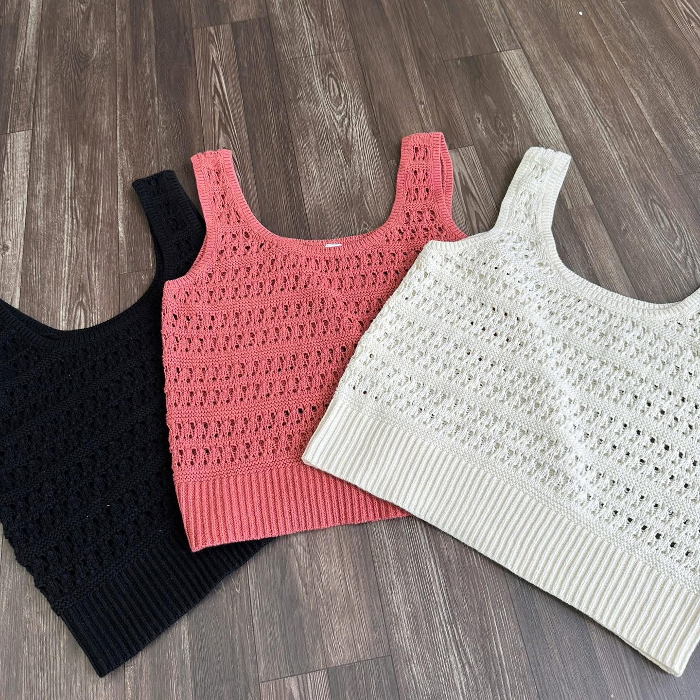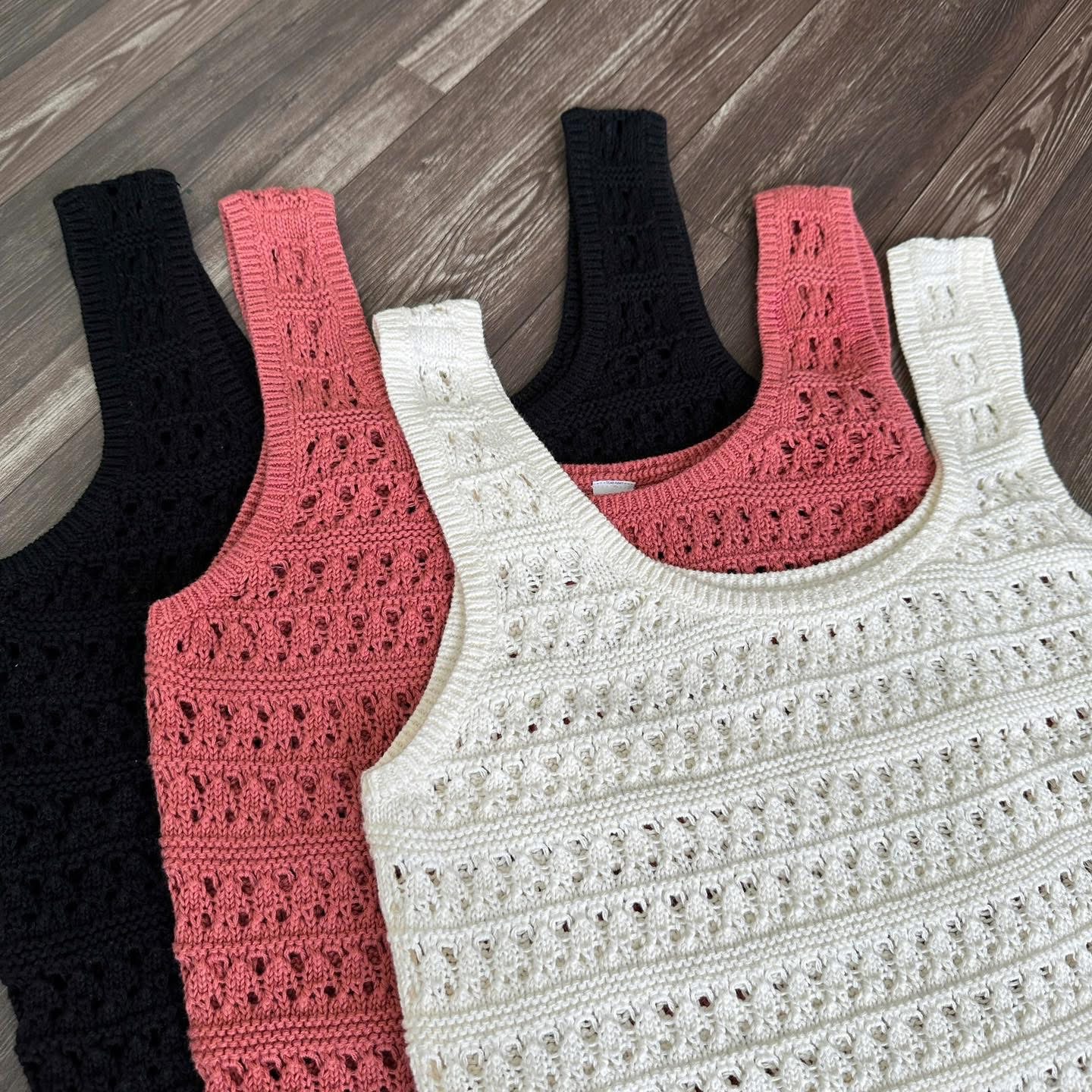 💚[Có Bigsize]Áo len crochet 0LD.N@VY xuất xịn bigsize, dáng tank top cổ tròn sát nách ôm nhẹ tôn dáng