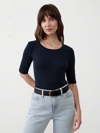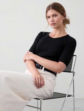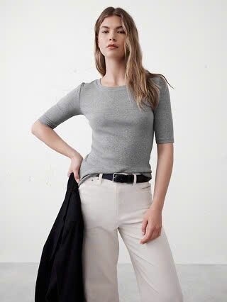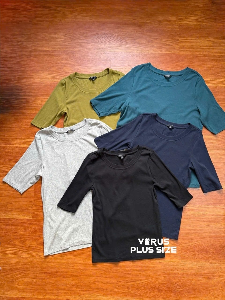 ✨Áo form ôm nhẹ, tôn dáng gọn gàng.Thiết kế tay lửng, cổ tròn basic dễ phối đồ.