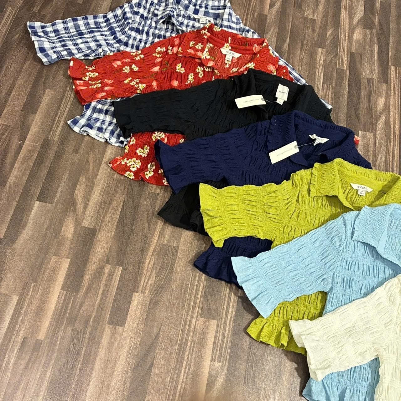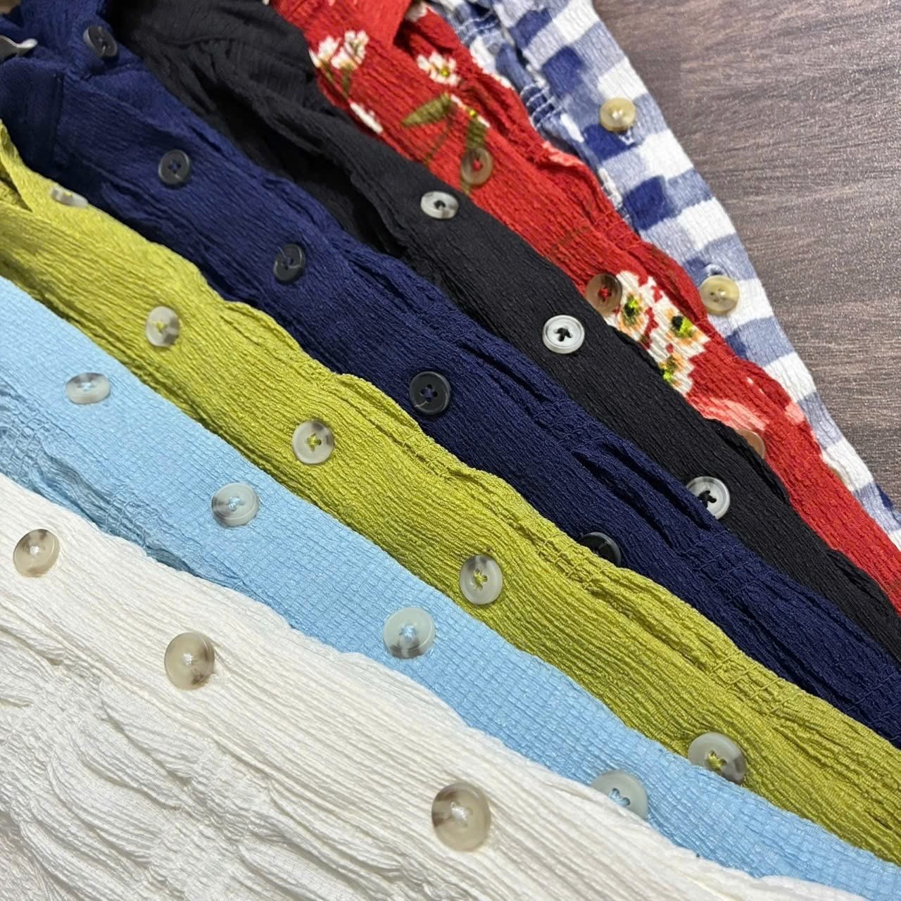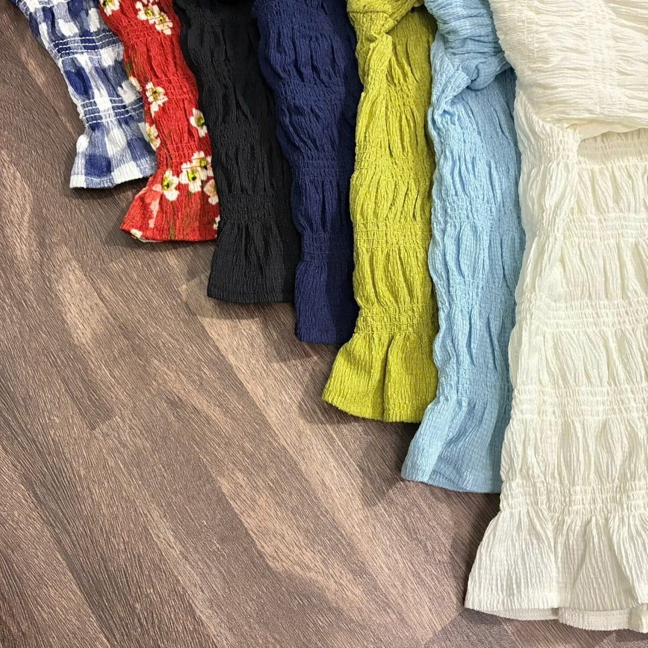 💡 Thiết kế form ôm nhẹ, nhún toàn thân tạo độ co giãn, cổ bẻ + tay lửng thanh lịch, lai bèo nhẹ nữ tính, mặc lên tôn dáng gọn gàng, dễ phối đồ