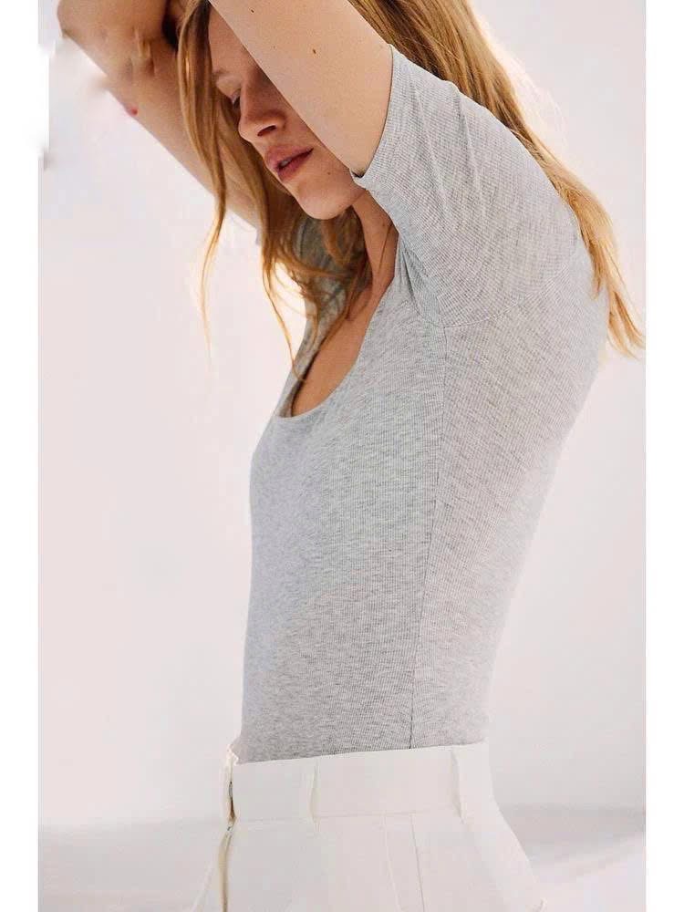 💚[Có Bigsize] Áo bodysuit Hắc em xuất xịn bigsize✨ Áo basic Form ôm body tôn dáng, cổ rộng bo tròn nữ tính, cài bấm tiện lợi.
