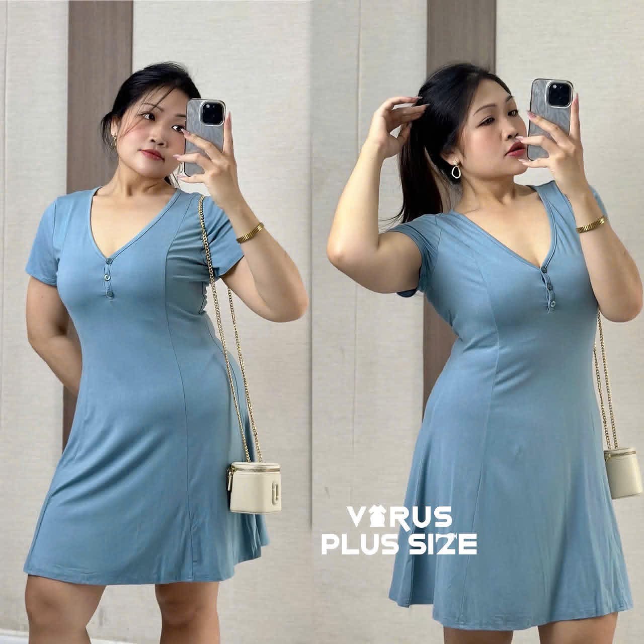 Thiết kế dáng A nhẹ nhàng, cổ tim phối hàng nút nhỏ tạo điểm nhấn tinh tế, tay ngắn gọn gàng tôn vai và phần eo ôm nhẹ giúp hack dáng, che bụng và hông hiệu quả. Form xòe vừa phải mang lại cảm giác nữ tính, mềm mại khi di chuyển.