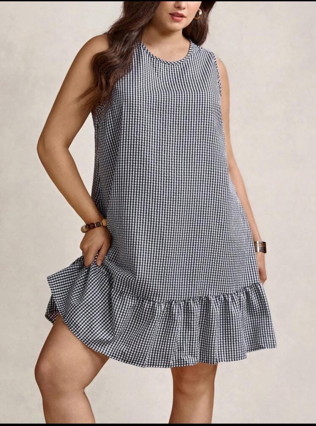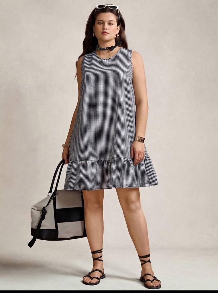 🎤Đầm babydoll Sh.ein bigsize, đầm hoạ tiêt caro xinh xắn, chất kate thoáng mât không co giãn