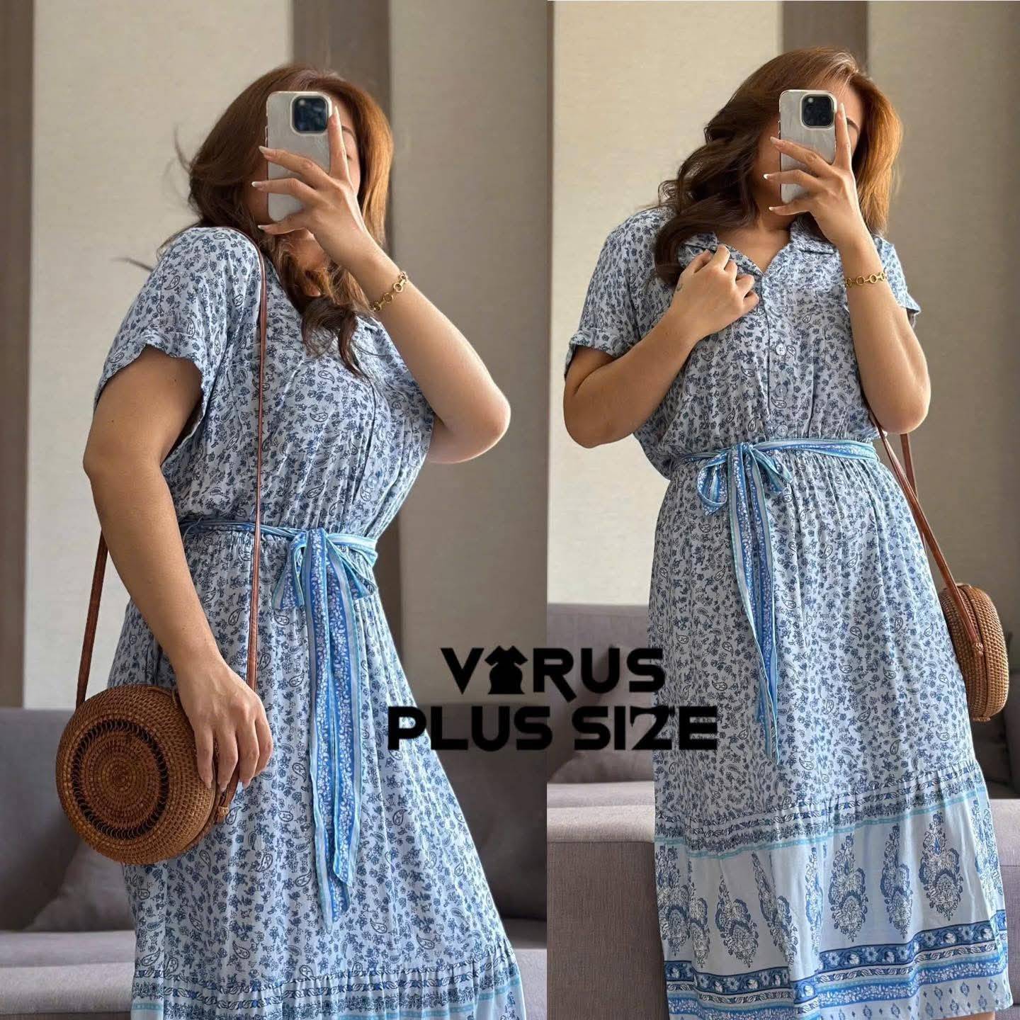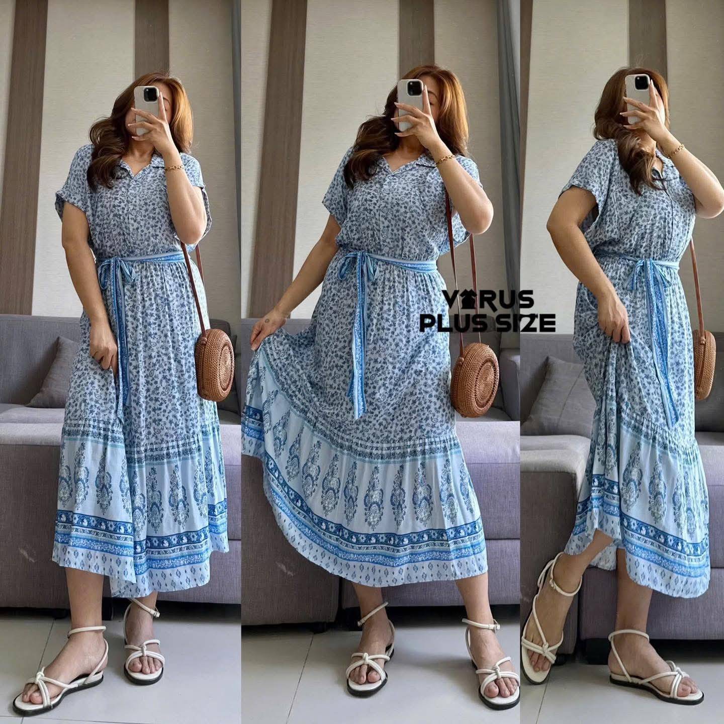 🧧Đầm Midi Lucky brand xuất xịn bigsize, chât tole lụa phần eo có chun co gian tôt( tuỳ đầm co dây belt)
