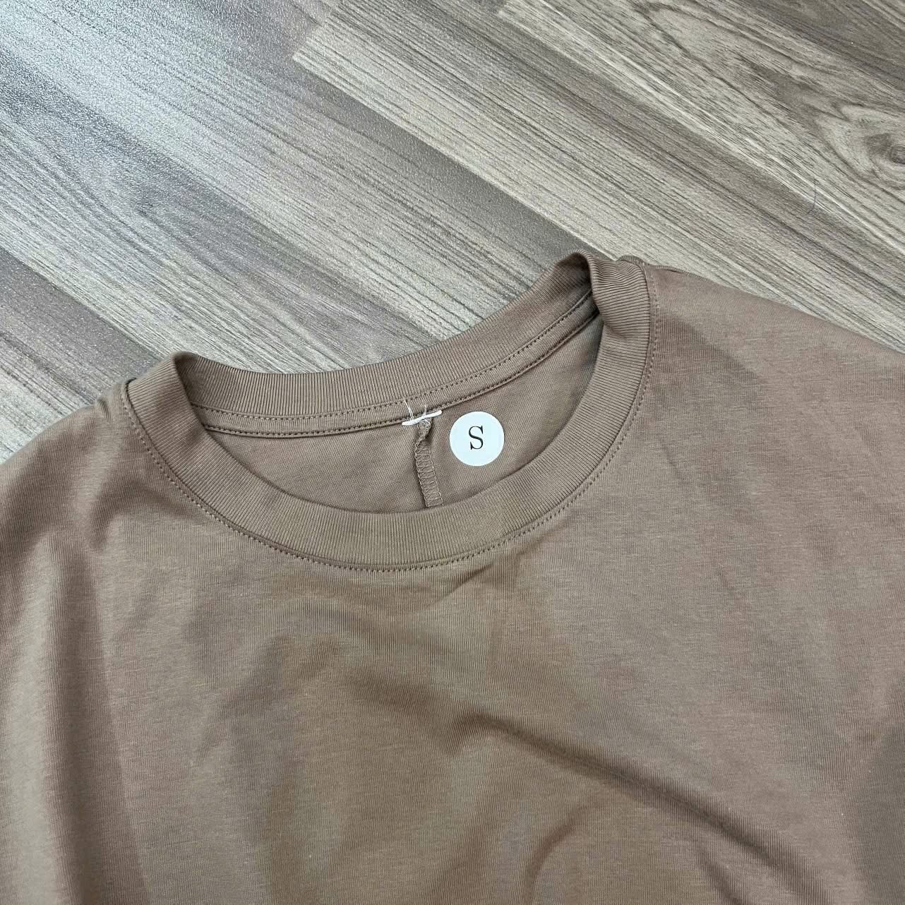 Thiết kế tay hến, cổ tròn basic.Dáng rũ nhẹ, mặc thoải mái, tối giản.