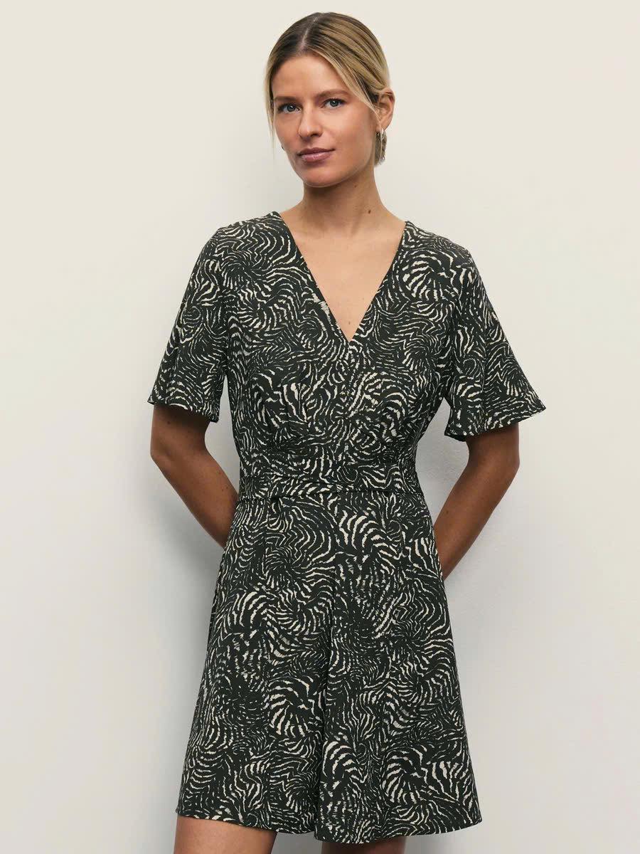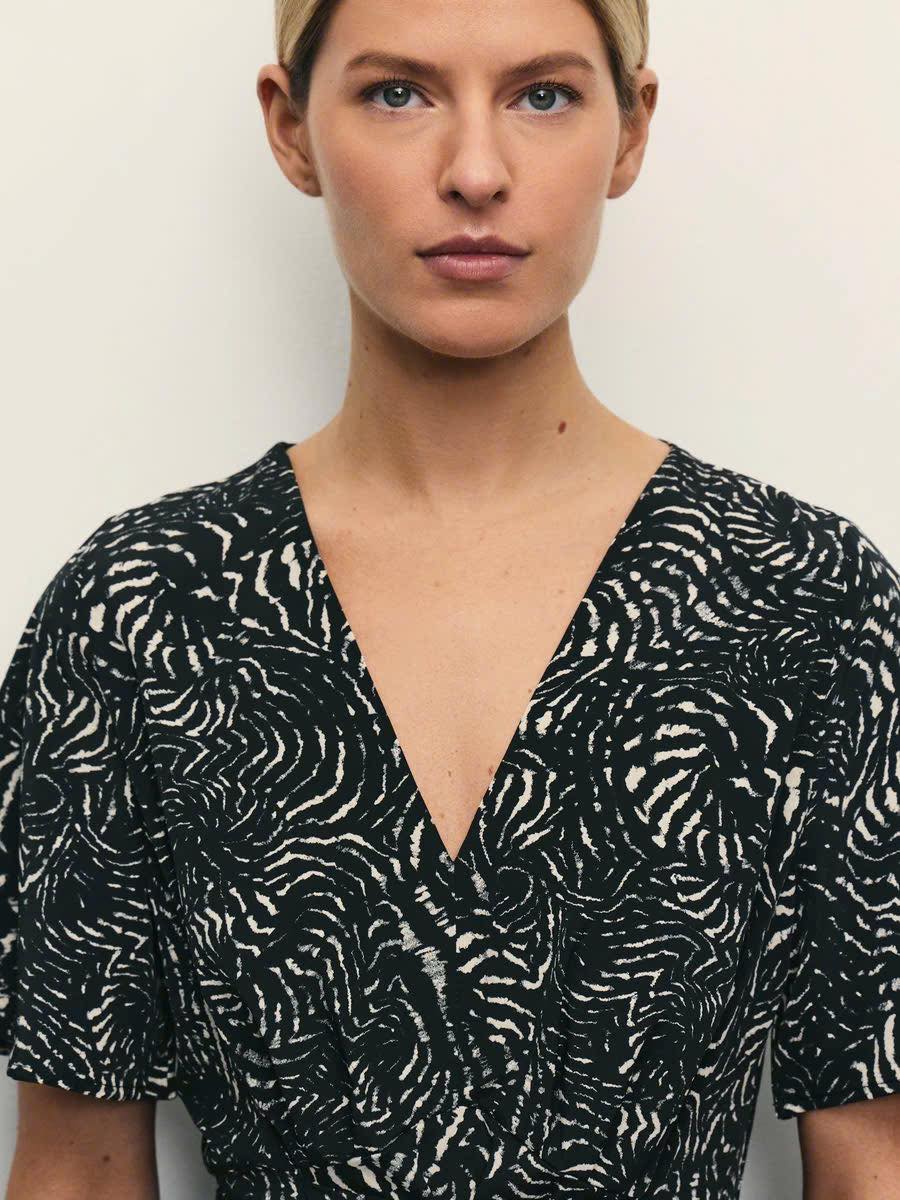 ✨ Thiết kế cổ chữ V , tay ngắn xoè nhẹ che khuyết điểm tốt.