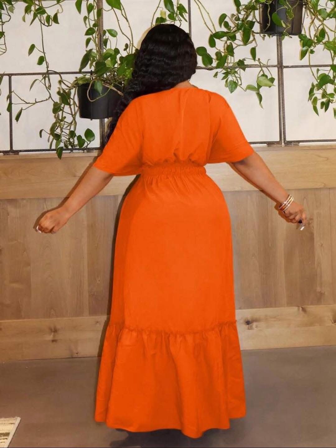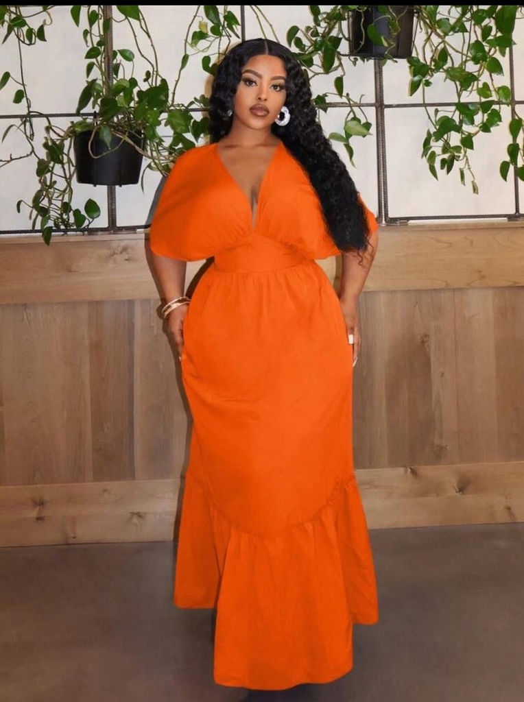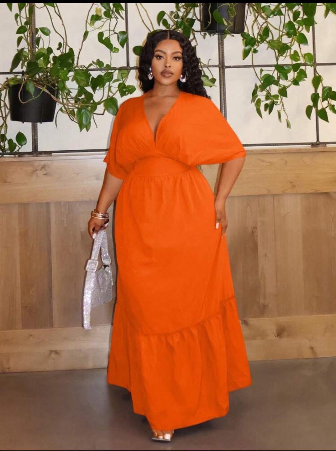 🎃Đầm maxi Shein bigsize, đầm cánh dơi cổ V phần tùng váy xoè thoải mái, chất poly thoáng mát
