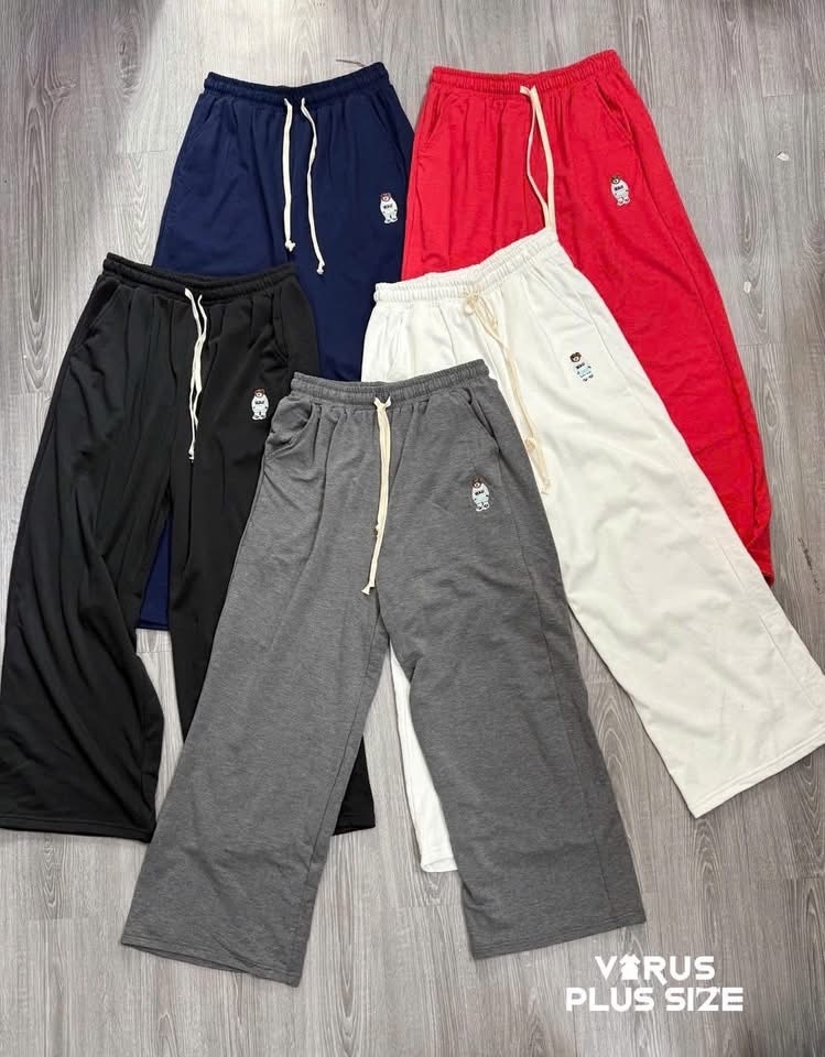 Form ống suông rộng rãi, lưng thun co giãn kèm dây rút dễ điều chỉnh, dáng mặc thoải mái không kén dáng.