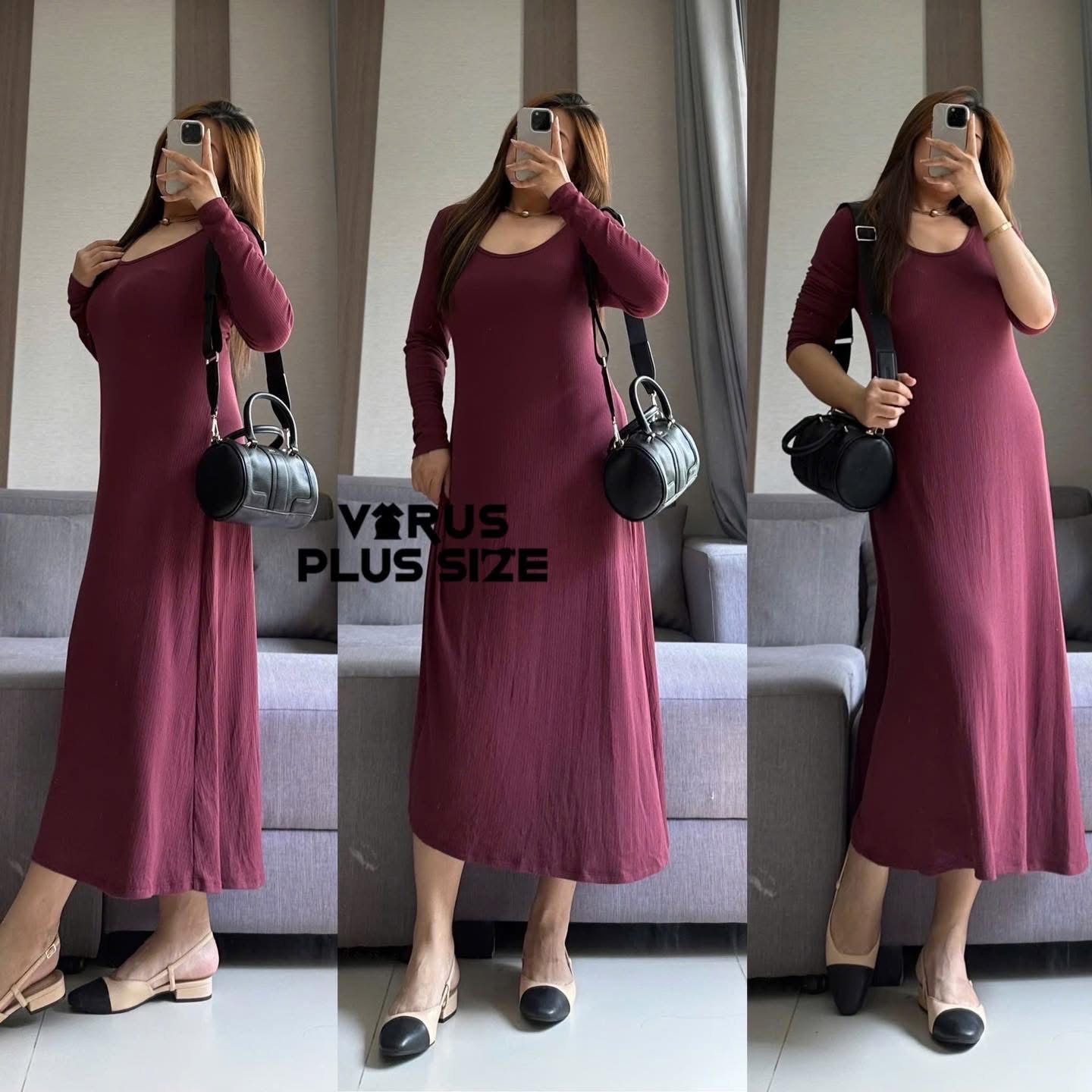 Đầm 🥭 Form midi chất thun gân co giãn tốt,form suông dáng