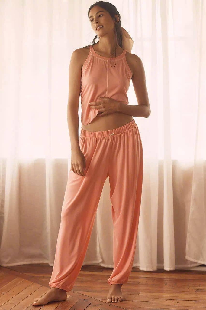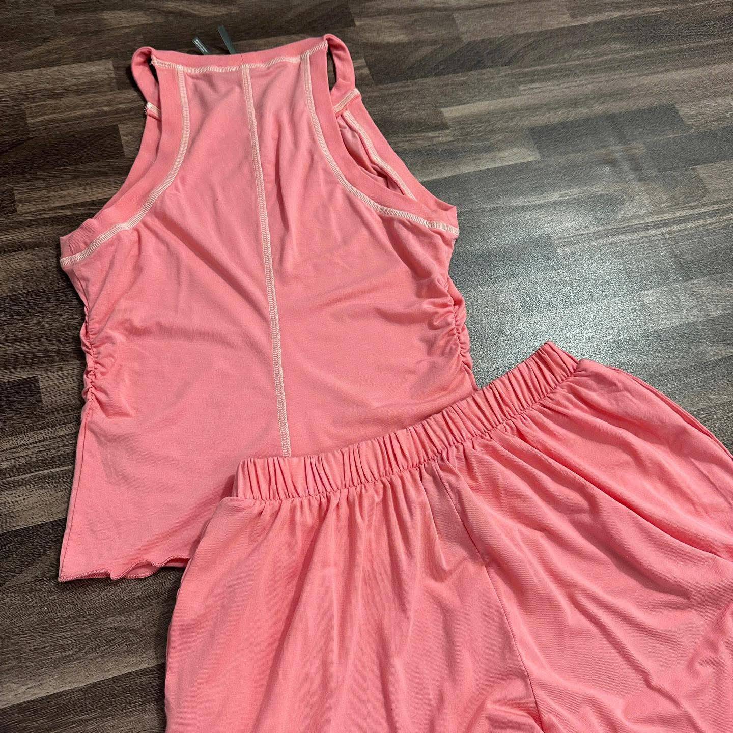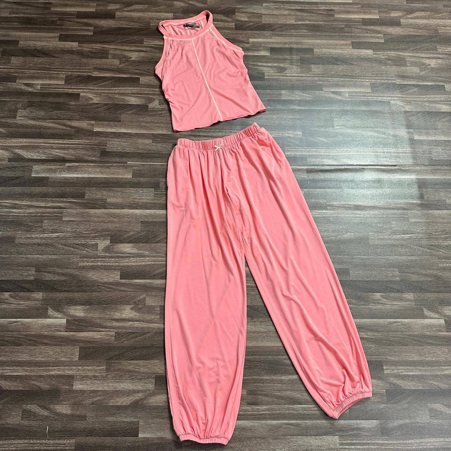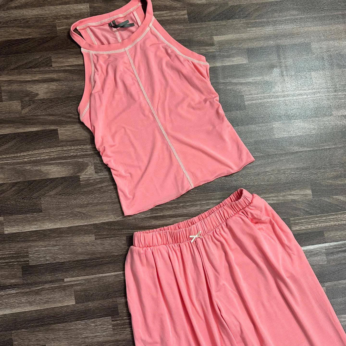 ✨Form dáng: Áo sát nách cổ cao, đường may nổi trẻ trung + quần dài bo nhẹ gấu, eo chun thoải mái vận động.