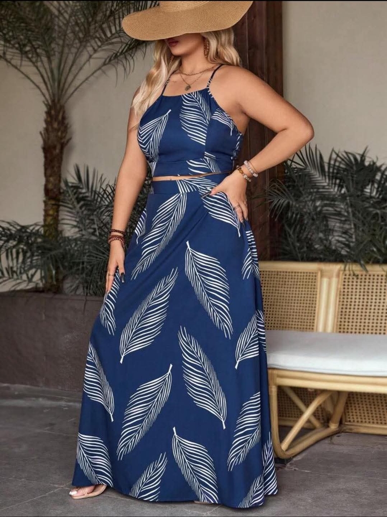 🌴🏝️Set váy Sh.ein bigsize, áo yếm crop chân vay eo chun xẻ tà chất voan cát dày dặn xịn xò( chất ko co giãn)(set yếm váy)