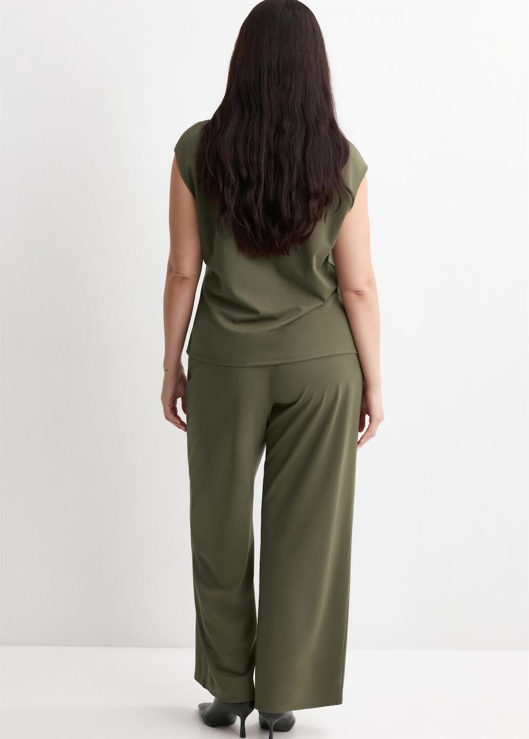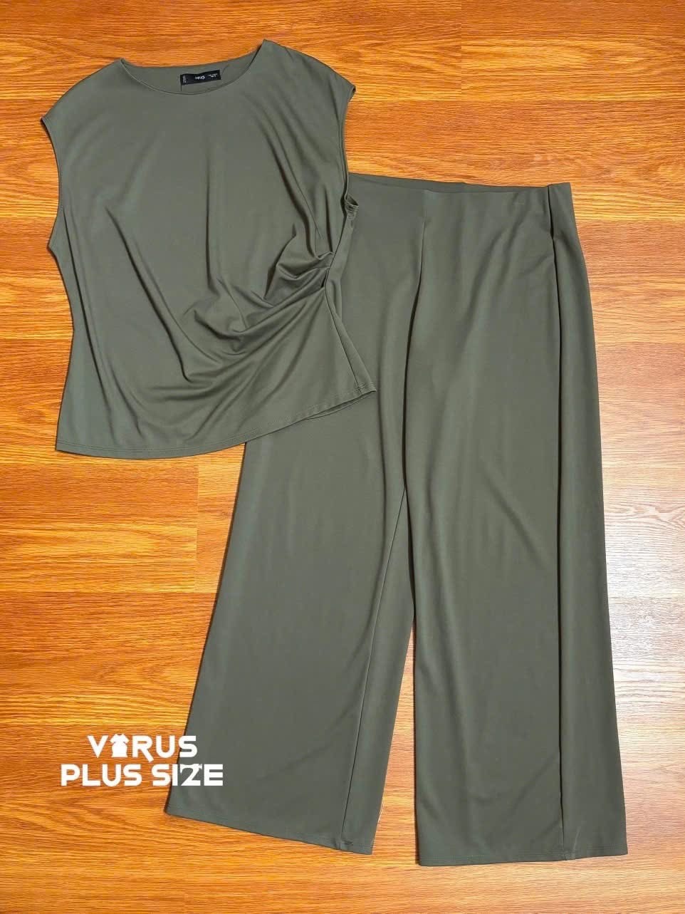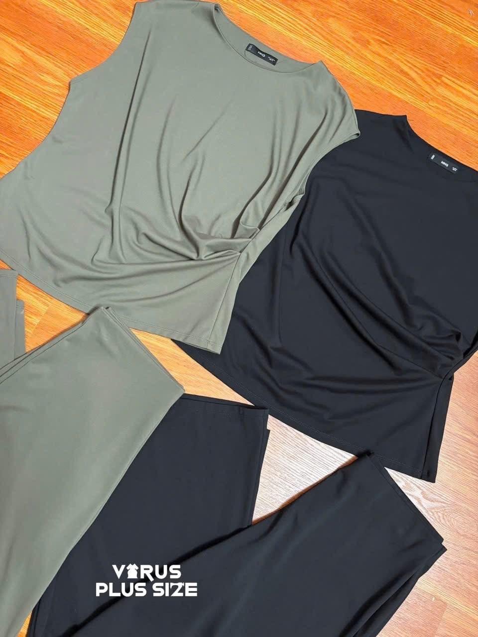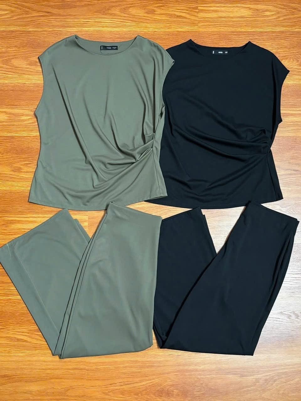 💡Áo suông cộc tay nhấn eo tinh tế, quần ống rộng dài lưng thun co giãn tốt