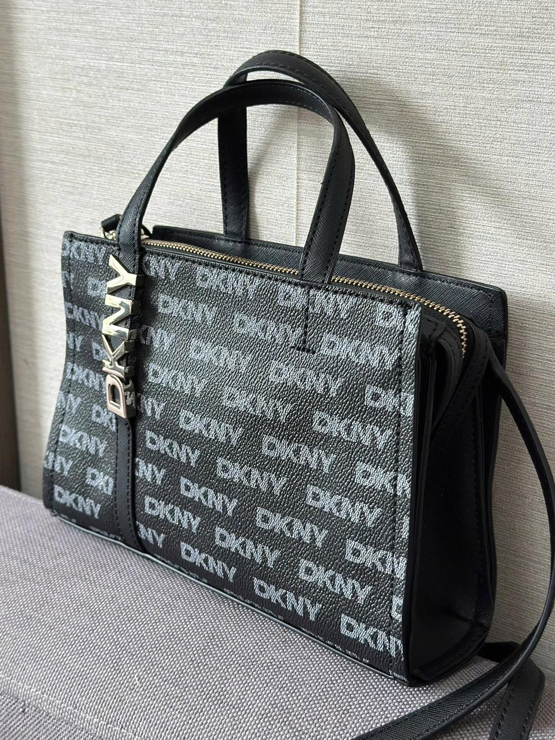 Túi xach DK.NY logo in monogram, 2 ngăn lớn có khoá kéo, rộng rãi để được nhiều phụ kiện. Dây đeo mảnh, nhẹ, có thể điều chỉnh